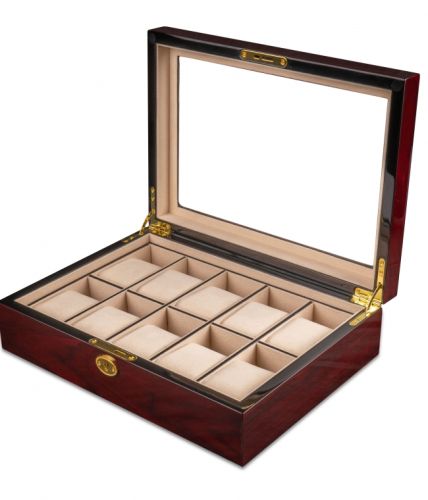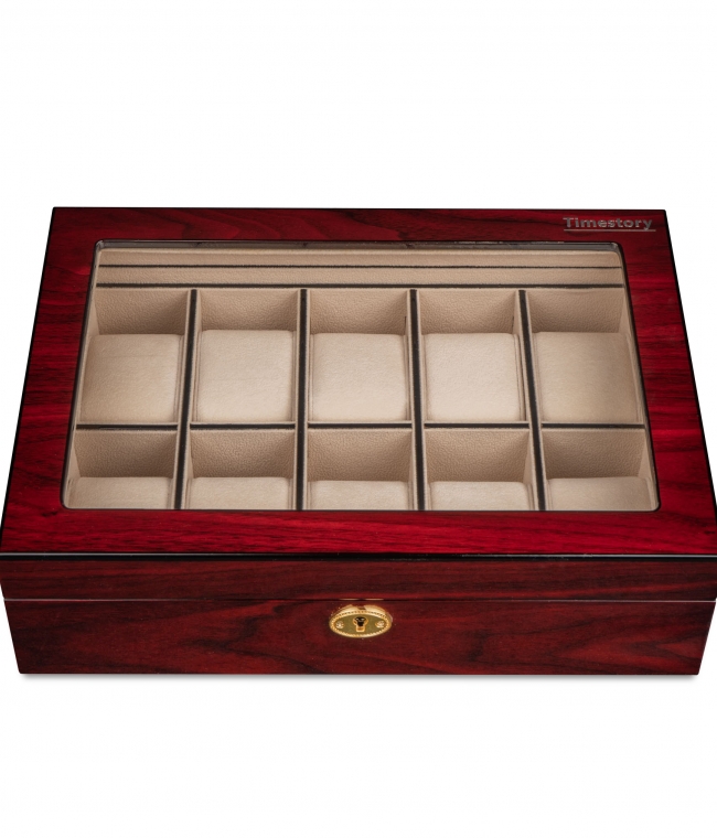 Для ценителей своих наручных аксессуаров мы расположили прозрачное стекло посередине крышки, через которое можно созерцать коллекцию из 10-ти часов.