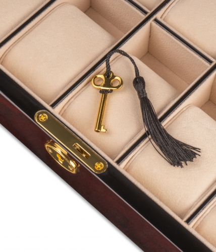 Демонстрируя свои часы через крышку, нужно не забывать про их сохранность. Обеспечить ее позволяет небольшой замочек на торцевой части, закрывающийся на ключ.