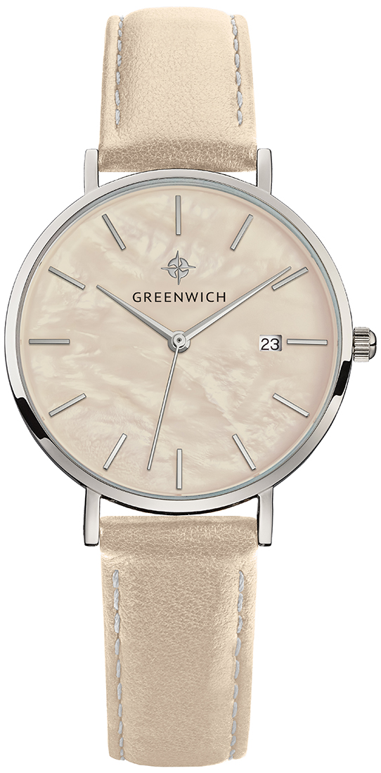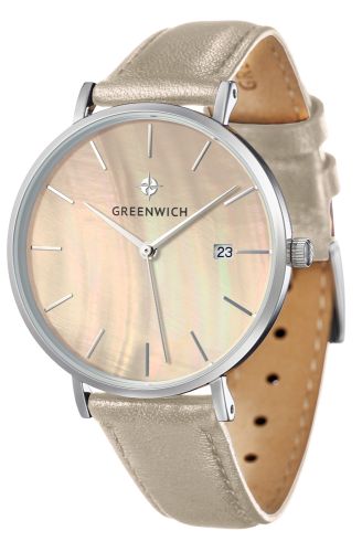 Задняя крышка часов украшена изображениями «розы ветров» и корабля, который является символом марки Greenwich.