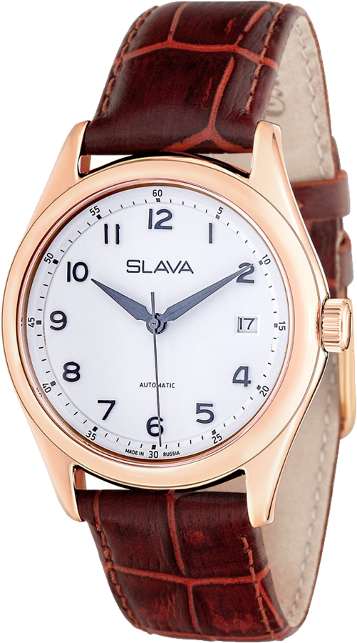 Мужские механические наручные часы Слава. Присутствует окошко даты. Циферблат закрывает устойчивое к потертостям и царапинам сапфировое стекло. Ремешок с классической застежкой. Вес часов 60 грамм. Гарантия 1 год.