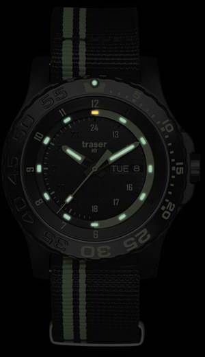 Часы Traser Green Spirit сделаны на базе армейских часов НАТО Type 6 MIL-G. Они полностью соответствуют всем требованиям к военным часам. Тем не менее элементы дизайна в зеленом цвете делают их очень стильным аксессуаром. Тем более, что зеленый является фирменным цветом швейцарской компании Traser, которая единственная в мире производит тритиевую подсветку.