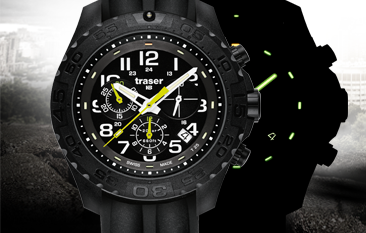 Часы Traser Outdoor Pioneer Chronograph помимо материала исполнения корпуса обладают еще одной уникальной особенностью – подсветкой даты. Тритиевая вставка тригалайт расположена непосредственно под окошком даты. В темноё время суток подсветка даёт возможность без проблем считывать дату в часах. Данная технология подсветки в часах применена впервые. Как и во всех часах Traser H3 watches, в новой модели установлена тритиевая подсветка всех стрелок и циферблата зеленого цвета. Так что «Пионеры» ночью не заблудятся. В сочетании с доступной ценой эта модель уже заняла верхнюю строчку в рейтинге по популярности среди часов для профессионалов, которые не подведут в самой сложной ситуации.