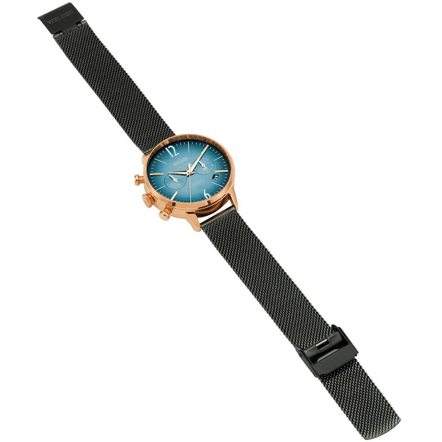 Кварцевые часы. Водостойкость WR 50. Центральные часовая, минутная и секундная стрелки. Индикация даты. 12/24х часовой формат времени. Функция Dual Time. Синий циферблат с часовыми индексами в виде штрихов и цифр. Корпус выполнен из нержавеющей стали с IP покрытием. Диаметр корпуса 36 мм, толщина 11 мм. Устойчивое к возникновению мелких механических повреждений фотохромное минеральное стекло. Браслет миланского плетения, выполнен из нержавеющей стали с IP покрытием. Ширина браслета 16 мм.